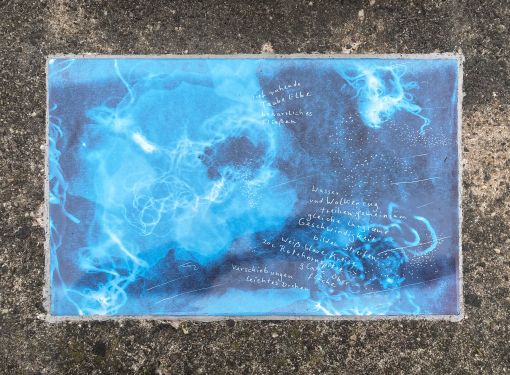 Cyanotypie-Zeichnung, Emaille, 19,6 x 31,5 cm, 2022