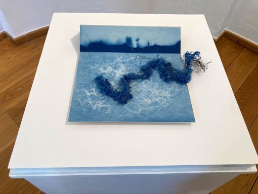 2024, cyanotype-thread-object, 6 x 28 x 32 cm